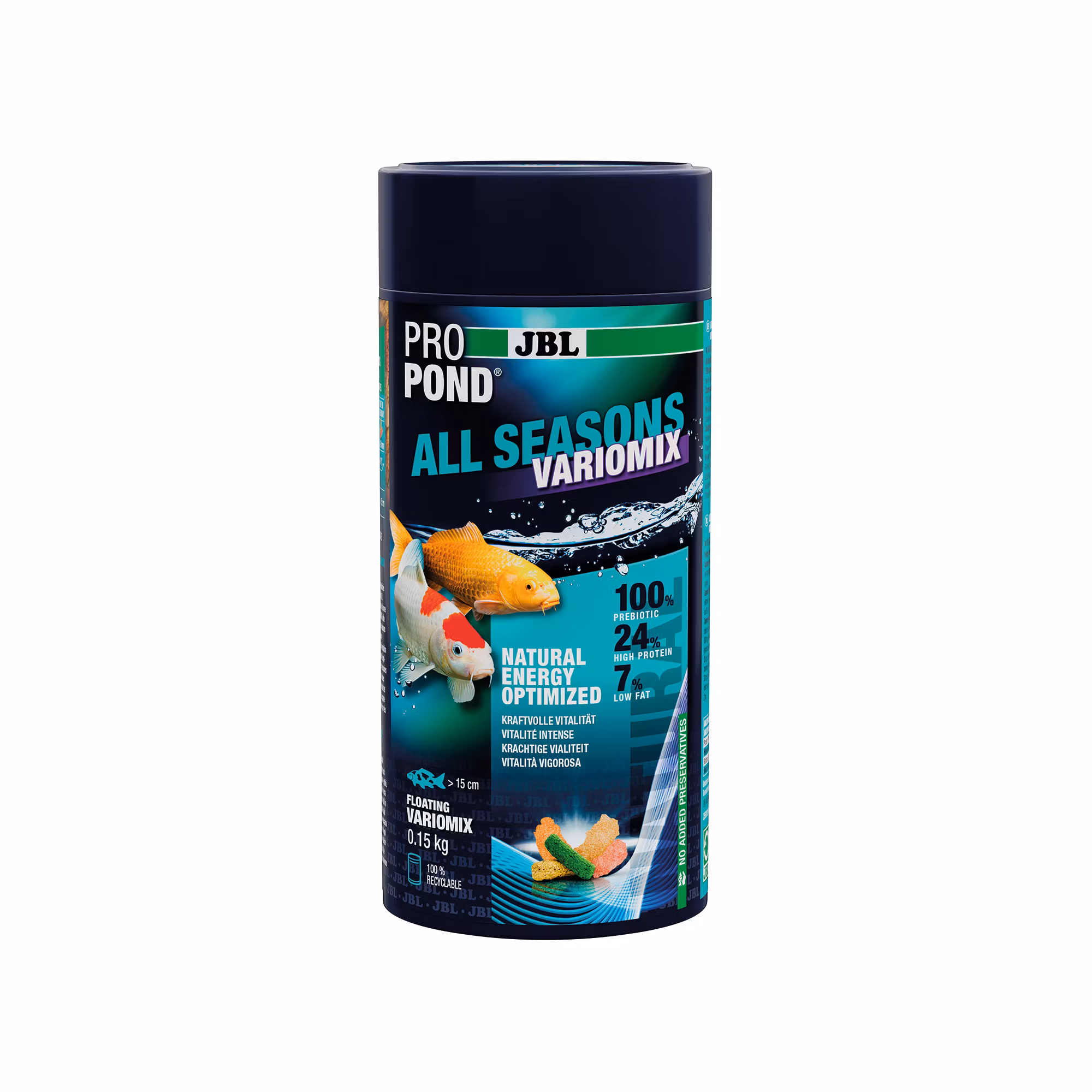 Sammanfattningsvis: JBL ProPond All Seasons Variomix är lösningen för dig som vill göra matningen enkel men ändå ge dina fiskar det lilla extra. Variationen i konsistens och innehåll stimulerar fiskarnas naturliga födosök och främjar en hälsosam livsstil i dammen.