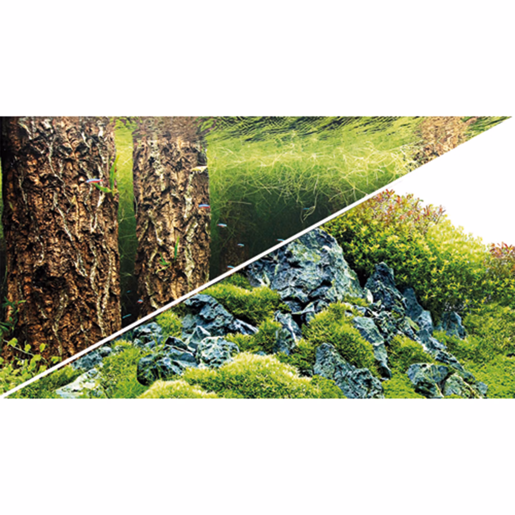 Aquascaping-fokus: Till skillnad från traditionella bakgrunder är dessa motiv designade för att inte ta över visuellt, utan för att fungera som en förlängning av din egen inredning och växter.