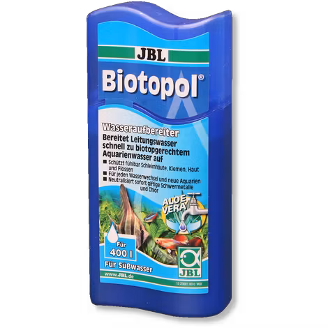 JBL Biotopol är ett högkvalitativt vattenberedningsmedel som omedelbart anpassar kranvatten till akvariefiskarnas behov. Även om svenskt kranvatten är av hög kvalitet, innehåller det ofta ämnen som klor eller tungmetaller från ledningsnätet. Biotopol oskadliggör dessa ämnen på sekunder och skapar en biologiskt hälsosam miljö där dina fiskar kan trivas utan stress.