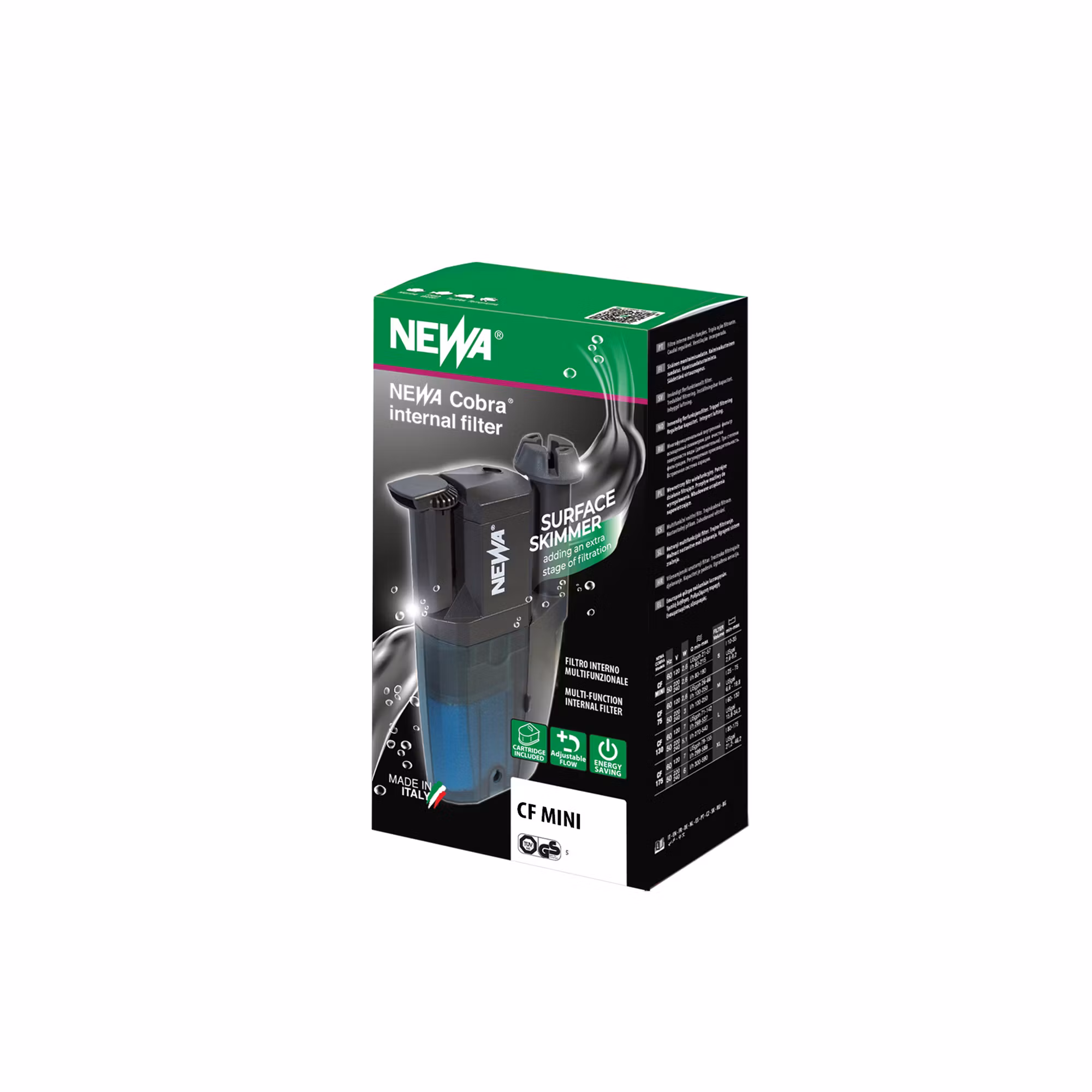Newa Cobra Mini är ett kompakt och högpresterande innerfilter speciellt framtaget för nano-akvarier och mindre vattenmiljöer upp till 35 liter. Trots sitt diskreta yttre är det packat med den teknik som gjort Cobra-serien känd: effektiv rening, tyst drift och det unika, ställbara utblåset.